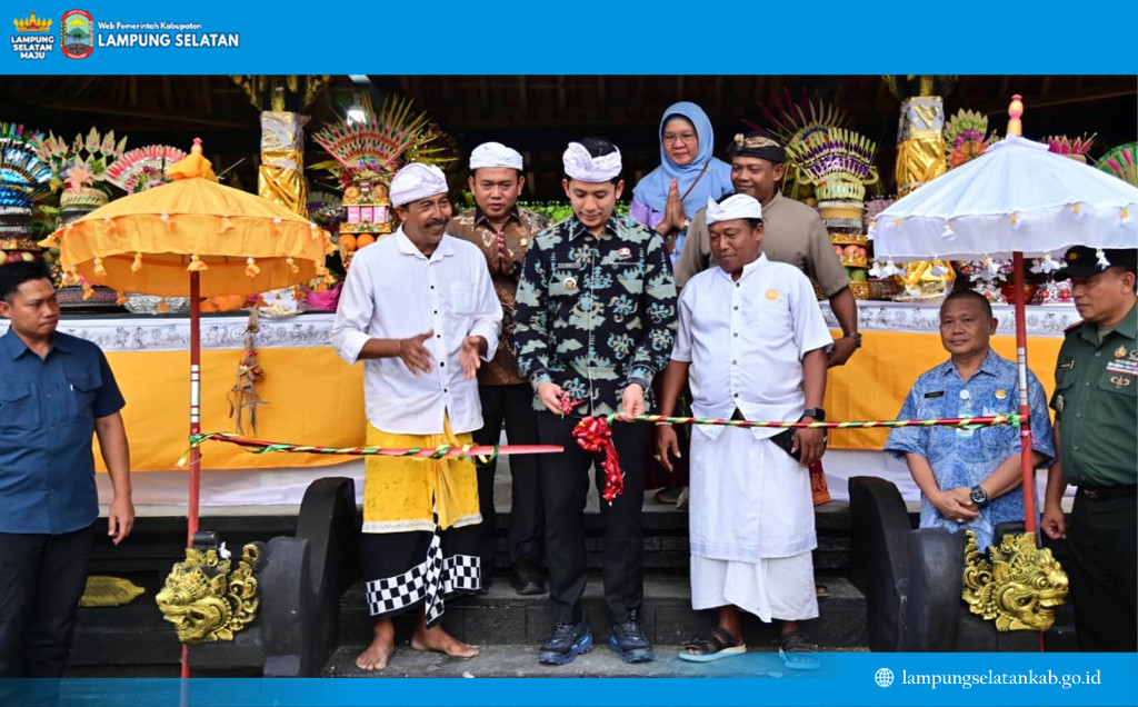 LAMSEL, Palas – ( MEDIA WARTAMANGGALA.COM – ( MEDIAWARTAMANGGALA.COM )– Bupati Lampung Selatan Radityo Egi Pratama meresmikan Balai Banten Pura Puseh Kertibuana di Desa Bali Agung, Kecamatan Palas, Kamis (6/11/2025). Fasilitas ini menjadi simbol penguatan nilai spiritual dan budaya umat Hindu sekaligus wujud kerukunan antarumat beragama di wilayah tersebut.