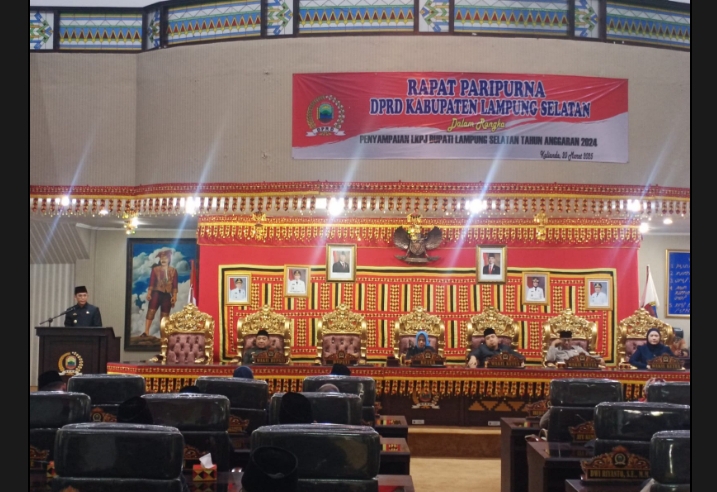 LAMPUNG SELATAN – (MEDIA WARTAMANGGALA.COM) – Bupati Lampung Selatan, Radityo Egi Pratama, menyampaikan Laporan Keterangan Pertanggungjawaban (LKPJ) Tahun Anggaran 2024 dalam Rapat Paripurna DPRD Lampung Selatan yang berlangsung di Ruang Sidang Gedung DPRD setempat, Kamis (20/3/2025).