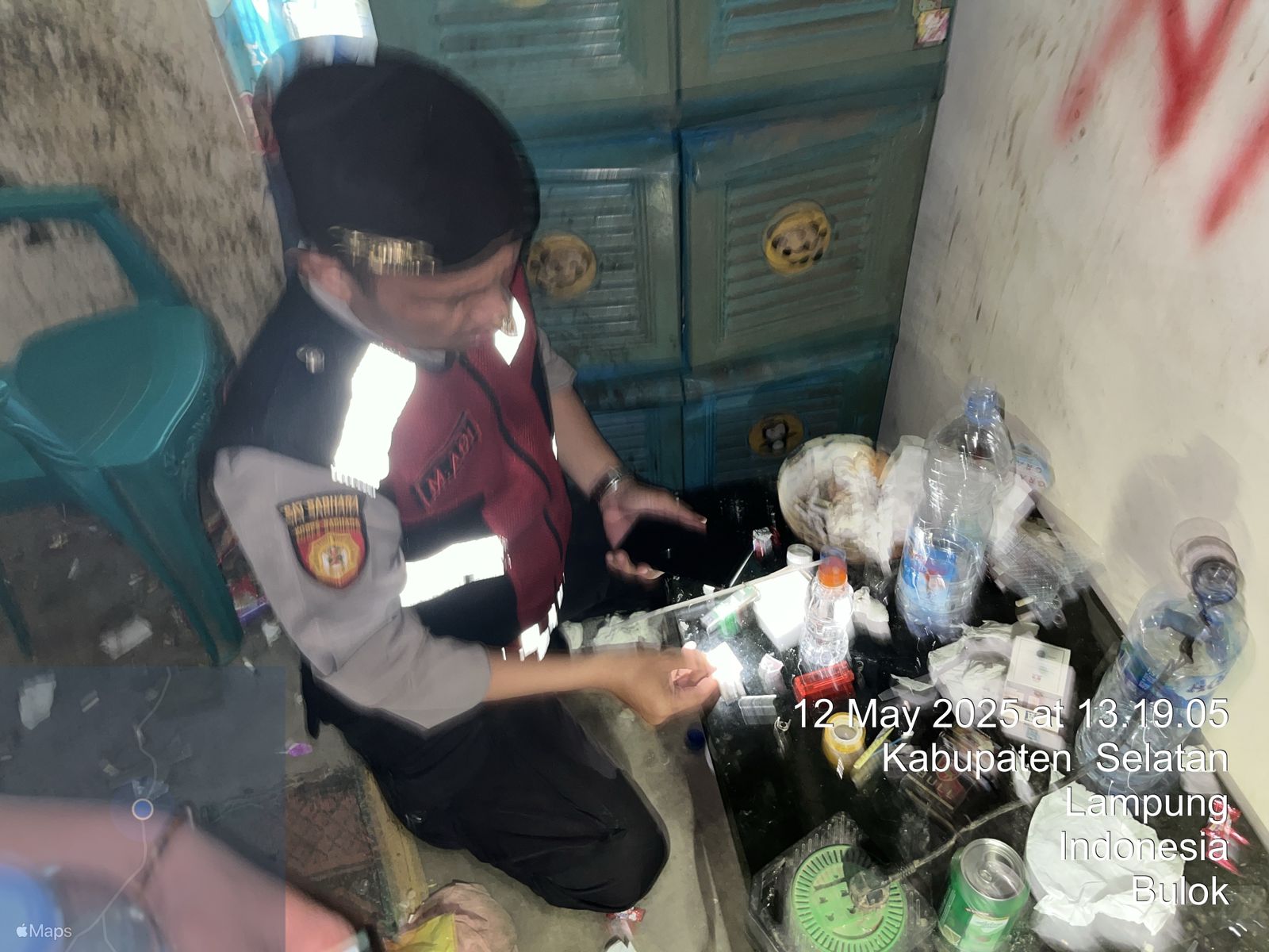 Dalam pelaksanaan patroli, petugas berhasil mengamankan seorang pemuda berinisial FS (24), warga Merak Belantung. Pemuda tersebut kedapatan membawa sejumlah barang mencurigakan yang diduga berkaitan dengan penyalahgunaan narkotika. Dari tangan tersangka, petugas menyita barang bukti berupa delapan bungkus plastik klip bening kosong, dua buah korek api gas, satu kotak rokok, serta satu set alat hisap sabu.