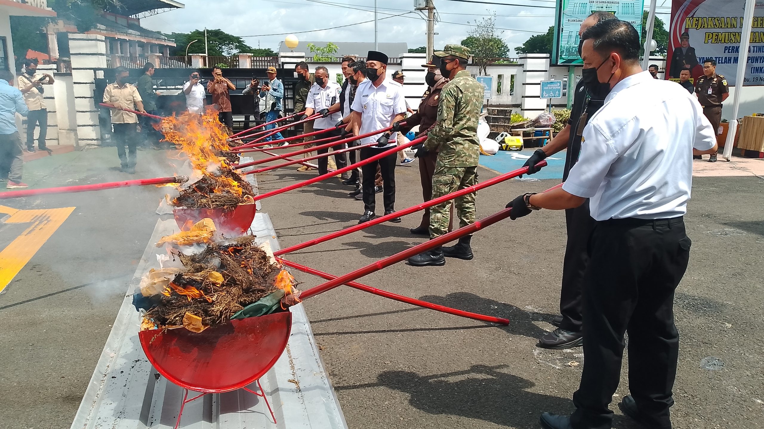 Barang bukti dimusnahkan dengan berbagai metode, seperti dibakar, diblender, dan dipotong, sesuai dengan jenisnya.