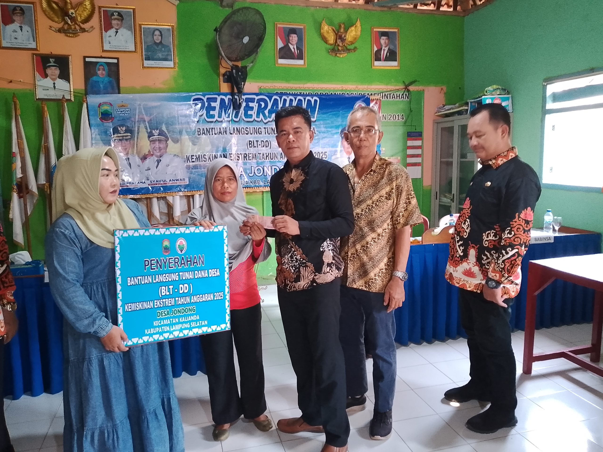 Lampung Selatan – ( MEDIA WARTAMANGGALA.COM ) – Pemerintah Desa Jondong, Kecamatan Kalianda, Kabupaten Lampung Selatan, menyalurkan Bantuan Langsung Tunai Dana Desa (BLT-DD) tahap ketiga tahun 2025 kepada 10 Keluarga Penerima Manfaat (KPM). Penyaluran berlangsung di Kantor Desa Setempat, Senin (26/9/2025).