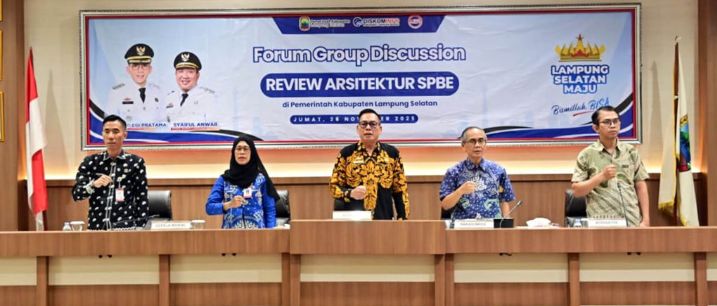 LAMPUNG SELATAN, Kalianda – ( MEDIA WARTA MANGGALA.COM ) – Pemerintah Kabupaten (Pemkab) Lampung Selatan melalui Dinas Komunikasi dan Informatika (Kominfo) menggelar Forum Group Discussion (FGD) Review Arsitektur Sistem Pemerintahan Berbasis Elektronik (SPBE) dan Penyusunan Arsitektur Data di Aula Rajabasa, Kantor Bupati Lampung Selatan, Jumat (28/11/2025).