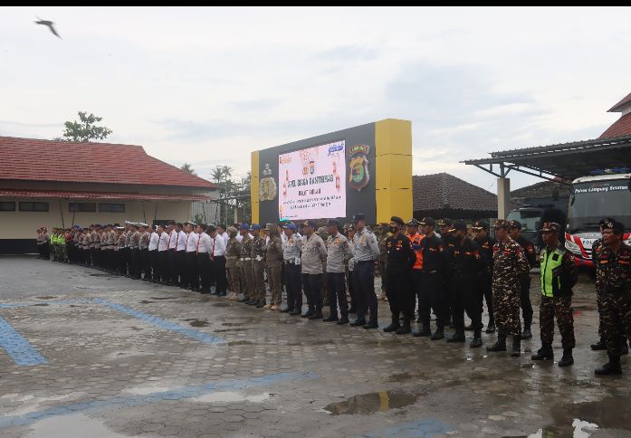 Kapolres Lampung Selatan AKBP Toni Kasmiri menegaskan, pola pengamanan tahun ini difokuskan pada waktu-waktu krusial yang berkaitan langsung dengan aktivitas ibadah masyarakat, mulai dari ngabuburit, pelaksanaan salat tarawih, hingga sahur. Hal tersebut disampaikan saat membacakan amanat Kapolda Lampung dalam Apel Gelar Pasukan pengamanan ibadah Ramadhan. Senin, 23/02/2026.