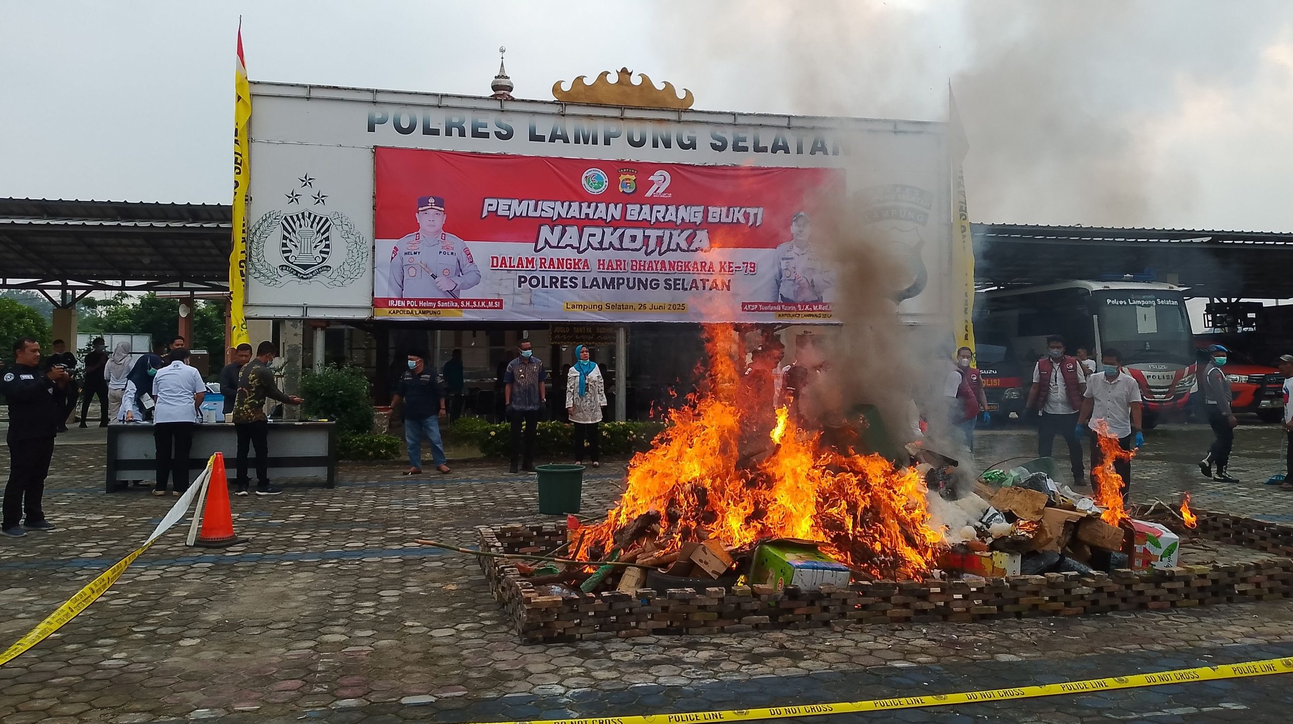Proses ini dilakukan secara transparan di Lapangan Apel Mapolres Lampung Selatan. Barang bukti jenis sabu dan Ganja dimusnahkan dengan cara dilarutkan dalam Ember besar yang sudah berisikan Bahan Bakar Solar hingga netral, kemudian ganja dimusnahkan dengan cara dibakar menggunakan bahan bakar solar.